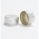 Unthreaded gold aluminium roll-on-pilfer-proof (ROPP) caps. These need to be applied using a ROPP capping machine to form the thread (not to be confused with a sealing tool which is used for tucking in the tamper evident band below the perforation).