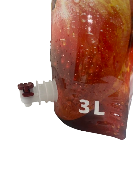 The pouches have a high performance Viniflow tap for fast dispensing and a carry handle for easy transport. The tap is one way, meaning it prevents outside air from entering the pouch as liquid is dispensed, keeping your drinks fresh. These pouches are suitable for use in pasteurisers, so liquid can be packaged and then pasteurised directly in the pouch. You can expect pasteurised cider to keep for up to 12 months in these pouches.