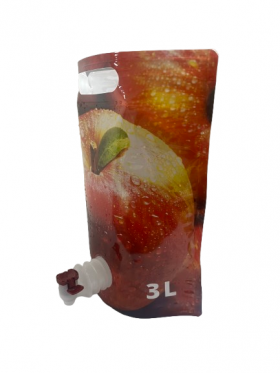 Our pouches are an innovative packaging concept designed to extend the shelf life of liquids. You can store wine, cider, fruit juice and much more in them. We find that the attractive apple print design makes these the ideal container for homemade apple juice or cider.