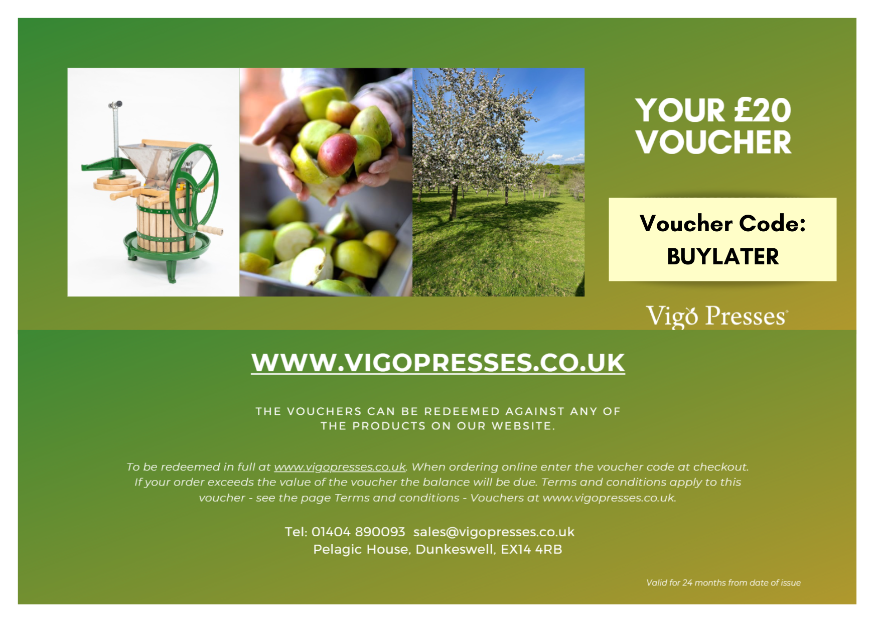 Gift vouchers can be redeemed against any of the products on our website for 24 months from date of purchase. See our Terms and Conditions (Gift Vouchers & Courses) for more information.